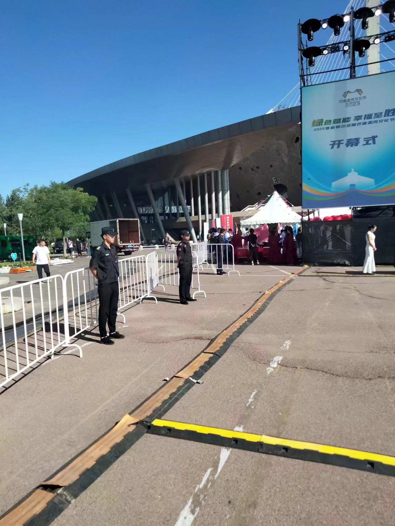 8月5日,由東勝區(qū)文化和旅游局主辦、巴音孟克投資集團(tuán)有限公司承辦,以“綠色賦能·幸福至勝”為主題的巴音孟克文化節(jié)在東勝區(qū)全民健身中心隆重舉行。 泰達(dá)保安總經(jīng)理郝永祥全程盯在現(xiàn)場(chǎng),坐鎮(zhèn)指揮、安排部署;全體參勤隊(duì)員們著裝規(guī)范,精神振作,始終高度負(fù)責(zé)、認(rèn)真執(zhí)勤、嚴(yán)格安檢、熱誠(chéng)服務(wù),圓滿完成了對(duì)接文化節(jié)各項(xiàng)安保工作任務(wù),為對(duì)接文化節(jié)順利舉行提供了有力保障,充分展現(xiàn)了泰達(dá)保安隊(duì)伍過(guò)硬的素質(zhì)和良好的形象。隊(duì)員們的表現(xiàn)受到了參會(huì)貴賓和主辦方的充分肯定。 開幕儀式以絢麗的彩炮、放飛自由翱翔的和平鴿的形式,拉開了巴音孟克文化節(jié)的序幕。嘉賓和各界代表齊聚一堂,共同見(jiàn)證了巴音孟克文化節(jié)的盛大開幕。 保安員執(zhí)勤期間,堅(jiān)守崗位,全力做好各項(xiàng)安保維穩(wěn)工作,對(duì)活動(dòng)周邊進(jìn)行全面排查工作,協(xié)助交警做好入場(chǎng)前及散場(chǎng)后的交通疏導(dǎo)工作。