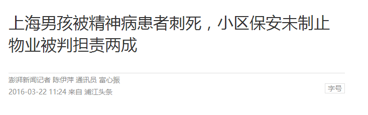 男孩被精神病人刺死,小區(qū)保安沒制止,法院:物管公司賠21